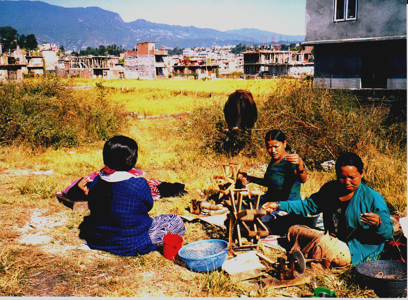 Spinning goat wool into yarn