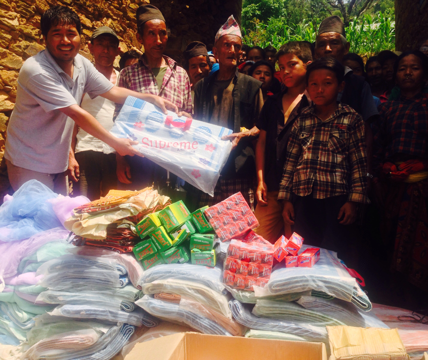 Handing out tarpaulins
